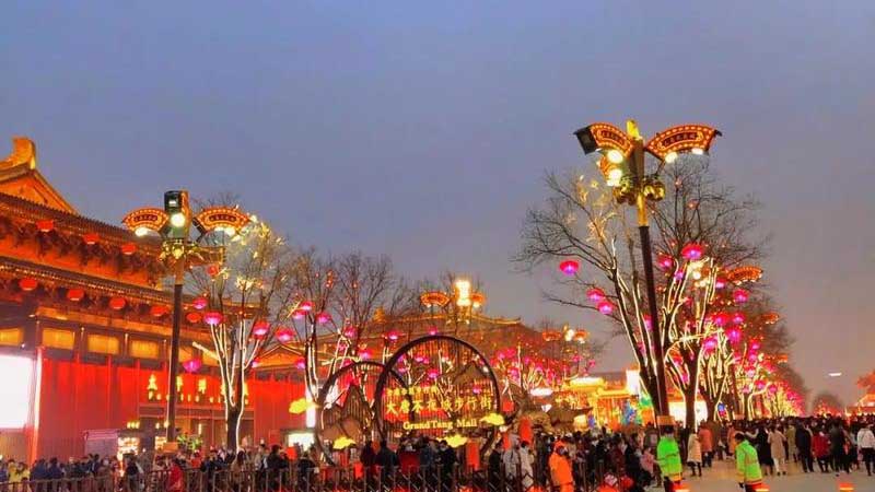 After immersing yourself in Xi’an’s museums, make your way to the Tang Ever-Bright City (大唐不夜城), a vibrant pedestrian boulevard that comes alive after sunset. This modern landmark draws inspiration from the splendour of the Tang Dynasty, blending dazzling lights, grand sculptures, and interactive art installations with a festive atmosphere. It’s a favourite spot for both locals and travellers to take photos, enjoy street performances, and sample local snacks.